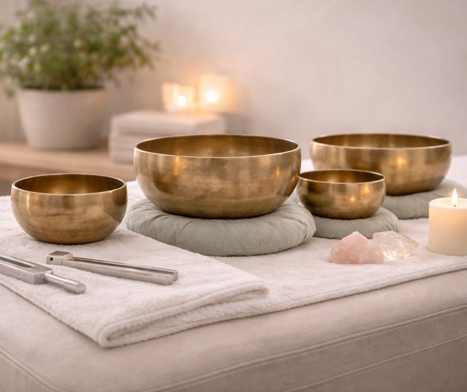 Sound therapy is a holistic practice that uses various sound sources to promote healing and well-being. It often involves a sound bed, tuning forks, singing bowls, and energetic chelation: Sound Bed: This is a specialized platform or mat that vibrates with sound frequencies, providing a deep, resonant experience that helps to relax the body and mind. Tuning Forks: These are metal instruments that produce precise frequencies when struck. They are used to target specific areas of the body or energy fields, helping to balance and harmonize the body's vibrations. Singing Bowls: These are typically made of metal or crystal and produce rich, resonant tones when struck or circled with a mallet. Their vibrations can help release tension, enhance relaxation, and support emotional healing. Energetic Chelation: This refers to techniques used to clear energetic blockages and balance the body's energy fields. Unlike physical chelation, which removes toxins from the body, energetic chelation focuses on releasing stagnant or negative energy that may be affecting overall well-being. In a typical session, these tools and methods work together to create a comprehensive approach to well-being, aimed at reducing stress, enhancing relaxation, and fostering emotional and physical health.